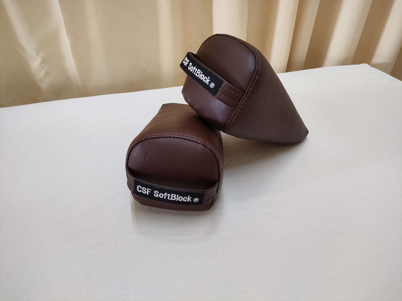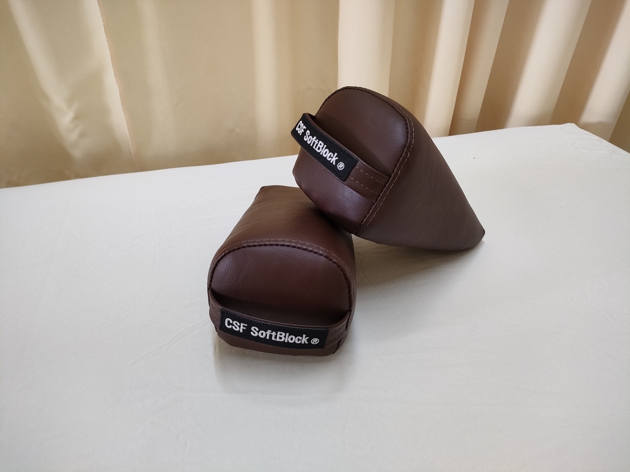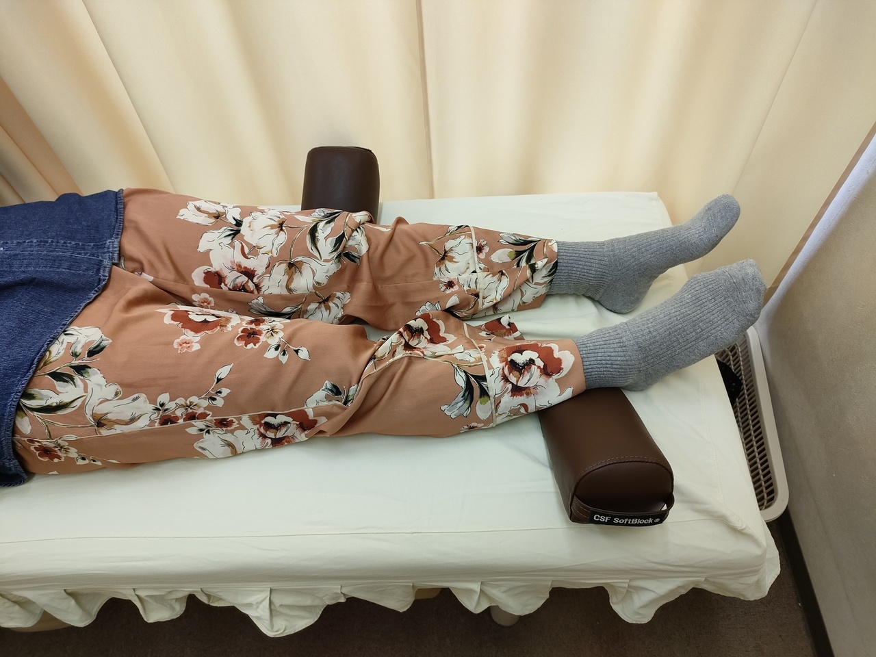 A: 三角形のブロックを足や身体などの下に差し込み、ご自身の体重を利用して優しく全身の筋膜に捻じれを加えて体液循環を促し歪みが整う器具です。 バキバキと音を鳴らすような強い刺激は一切ありません。「えっ、これだけ?」と感じるほどソフトな刺激ですが、これによって全身の体液循環が改善され、頭に溜まった体液がスムーズに流れ出します。